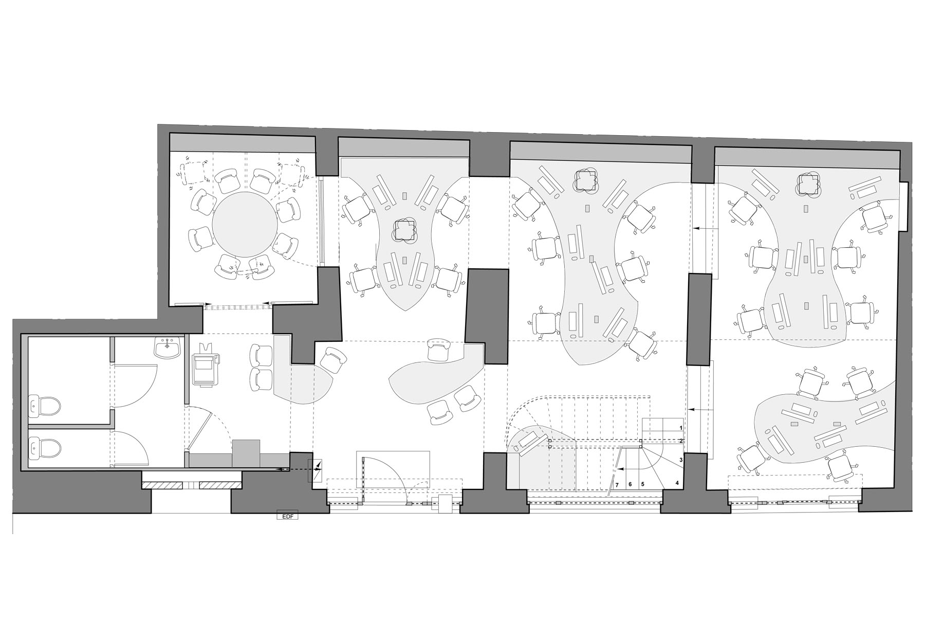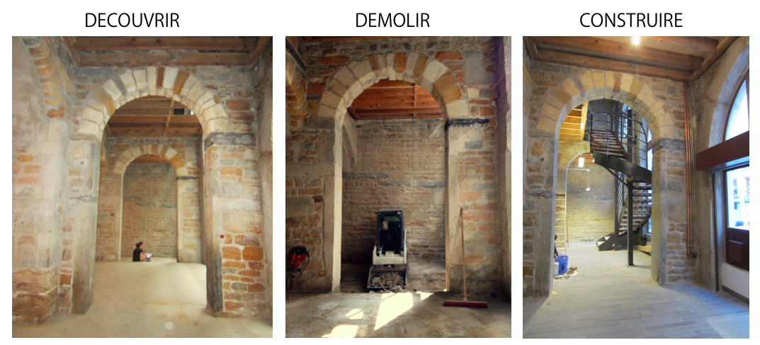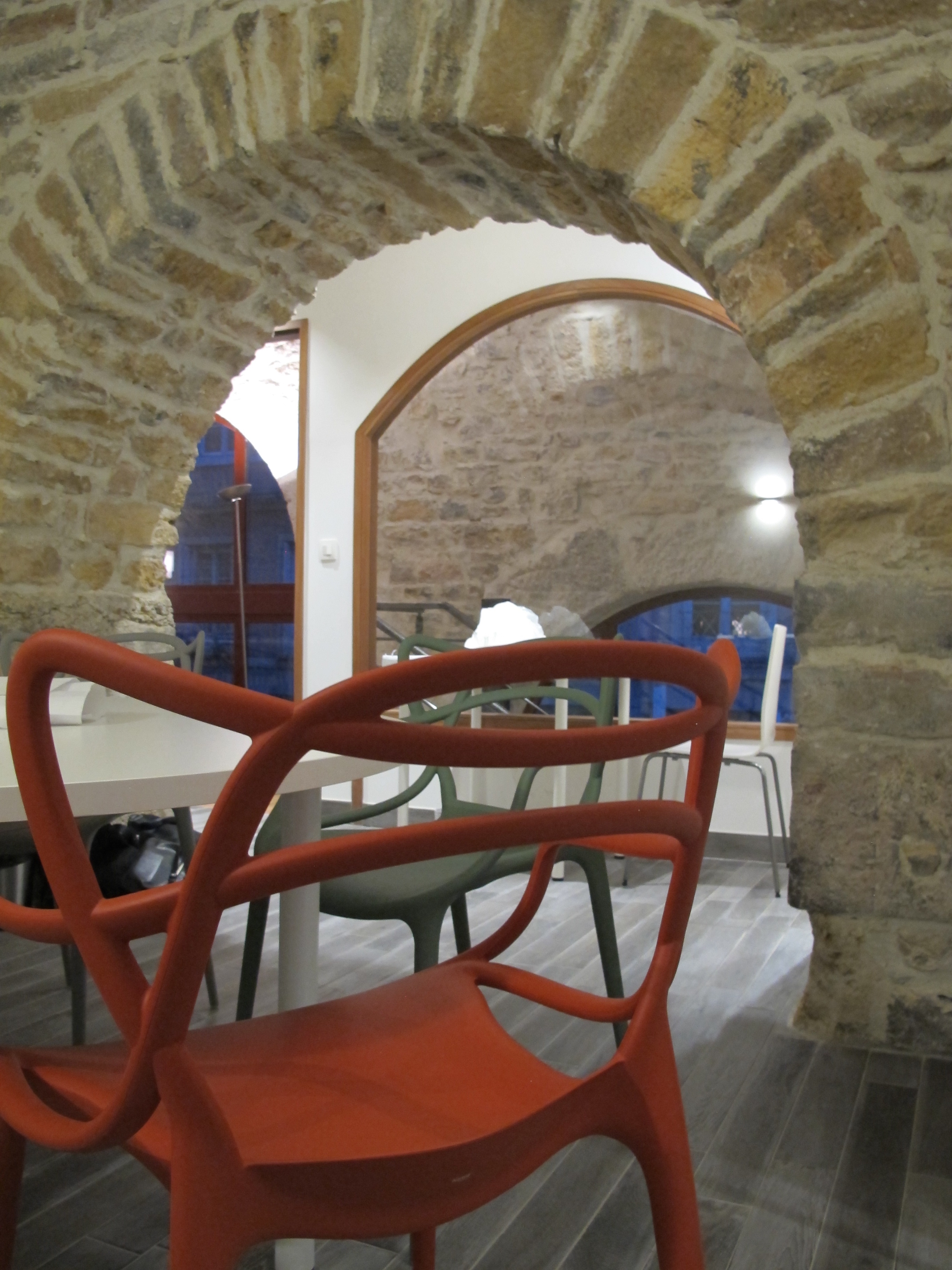 Dans les pentes de la Croix-Rousse, l’agence réhabilite un lieu atypique situé sous l’escalier et l’esplanade d’une place publique. Les voûtes en pierre éclairées par de grandes baies plein Sud, offrent une hauteur variant de 1,5 m à 8 m pour 2 niveaux.