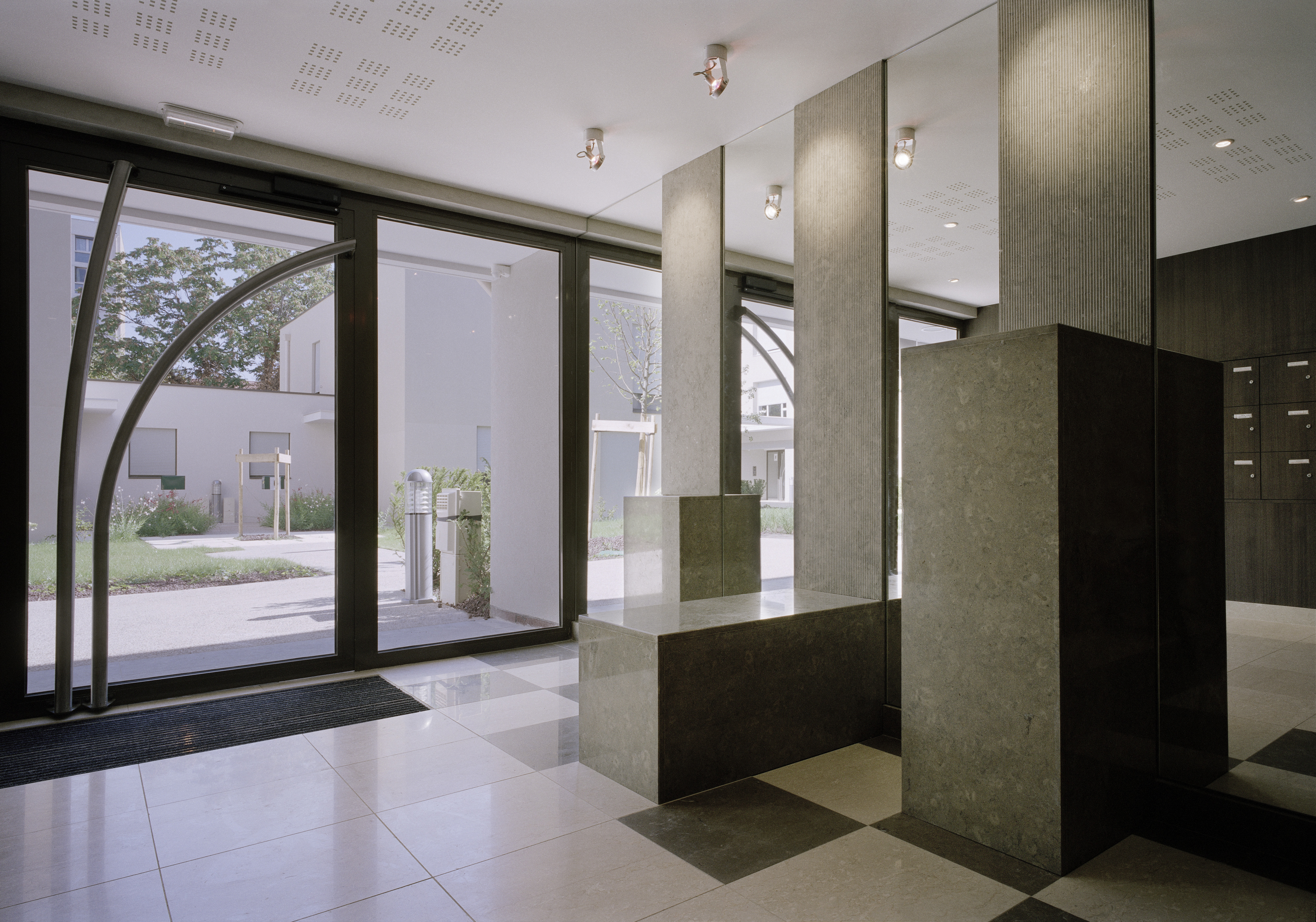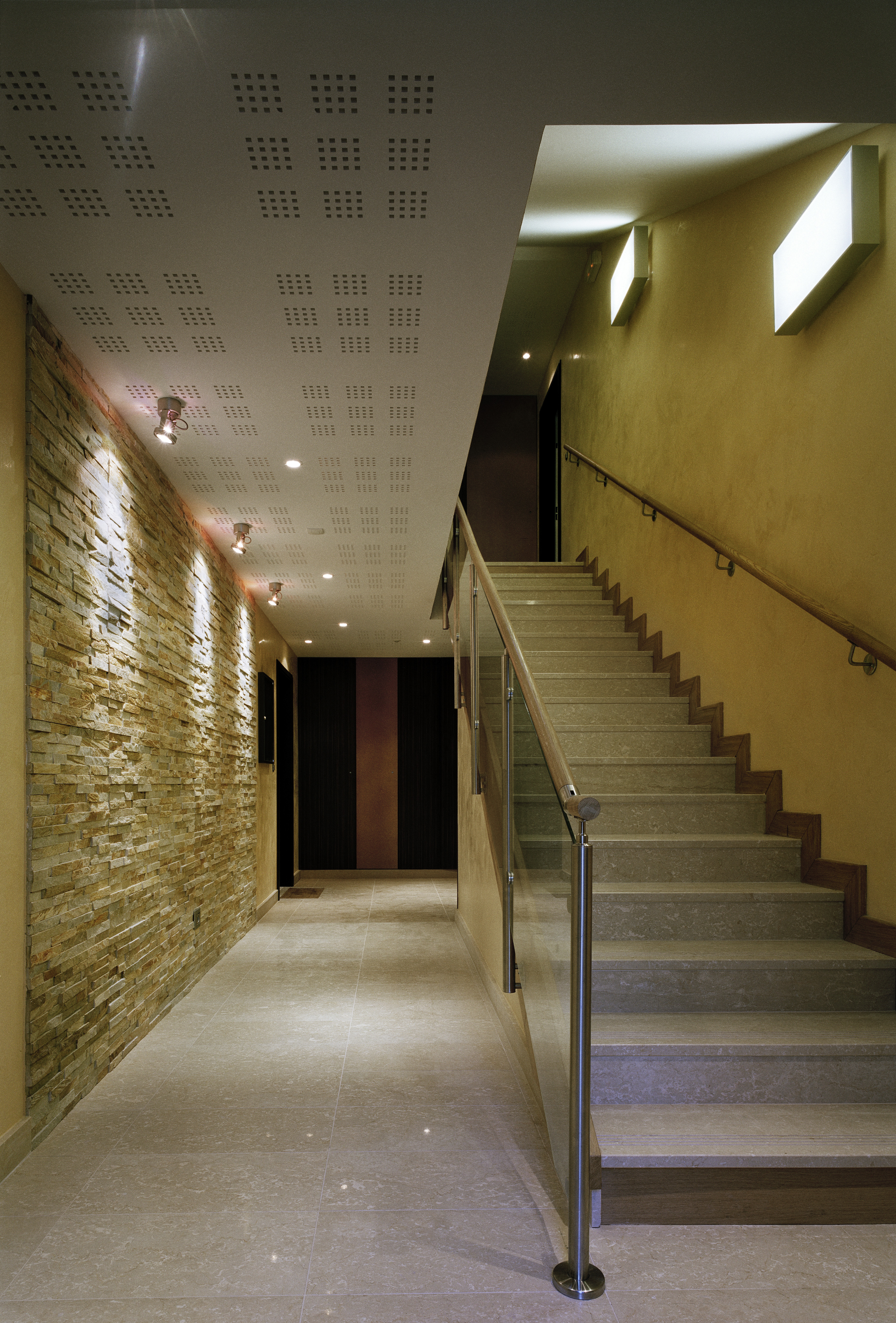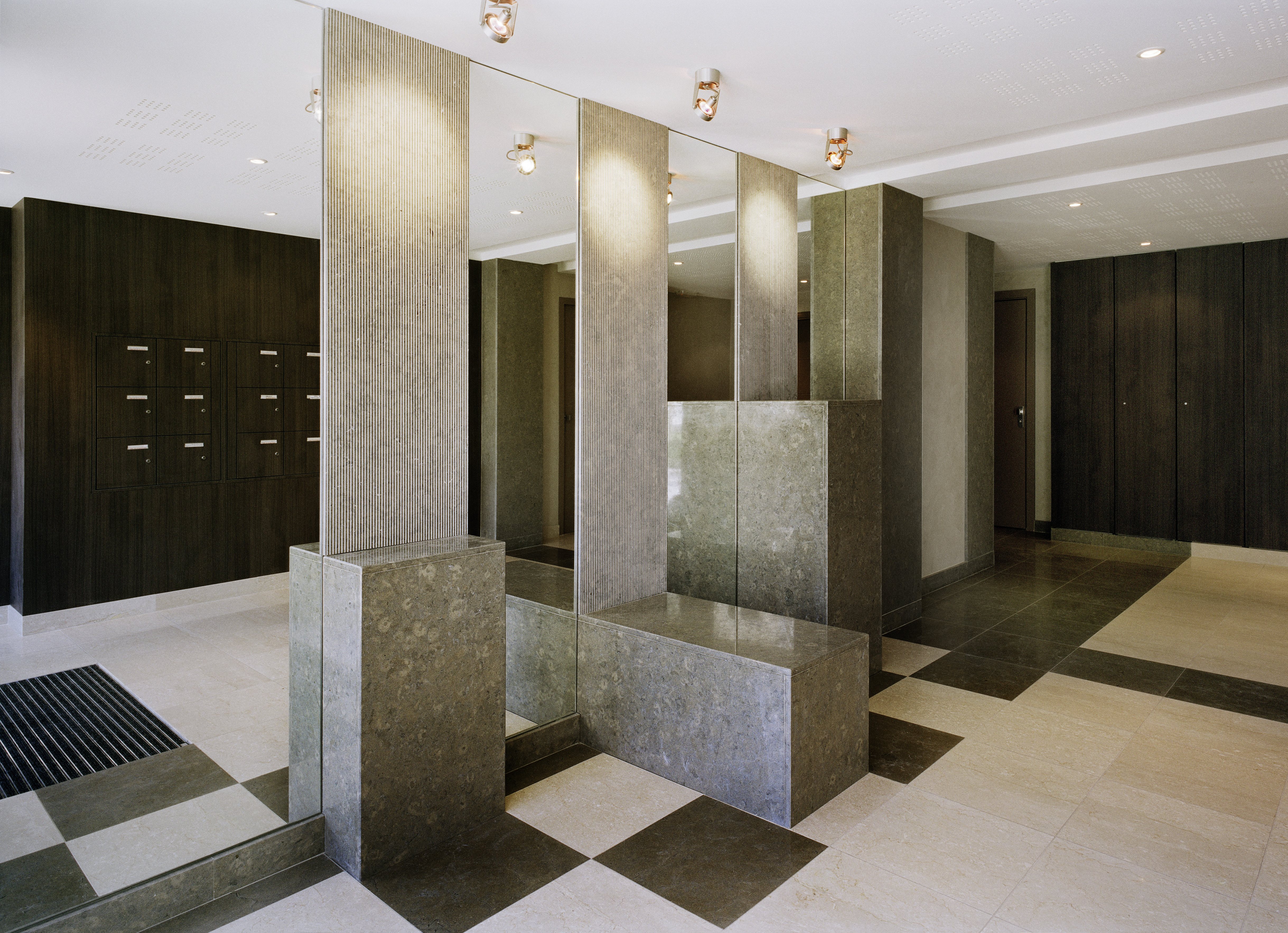Ce hall incarne la rencontre parfaite entre la modernité et la chaleur des matières naturelles. Avec ses murs en pierre et ses finitions métallisées, l’espace crée une atmosphère accueillante et raffinée. Les lignes architecturales épurées, associées à un éclairage d’ambiance et à des miroirs toute hauteur mettent en valeur la noblesse des matériaux et offrent une expérience visuelle apaisante. Un lieu qui respire la modernité tout en restant intemporel.