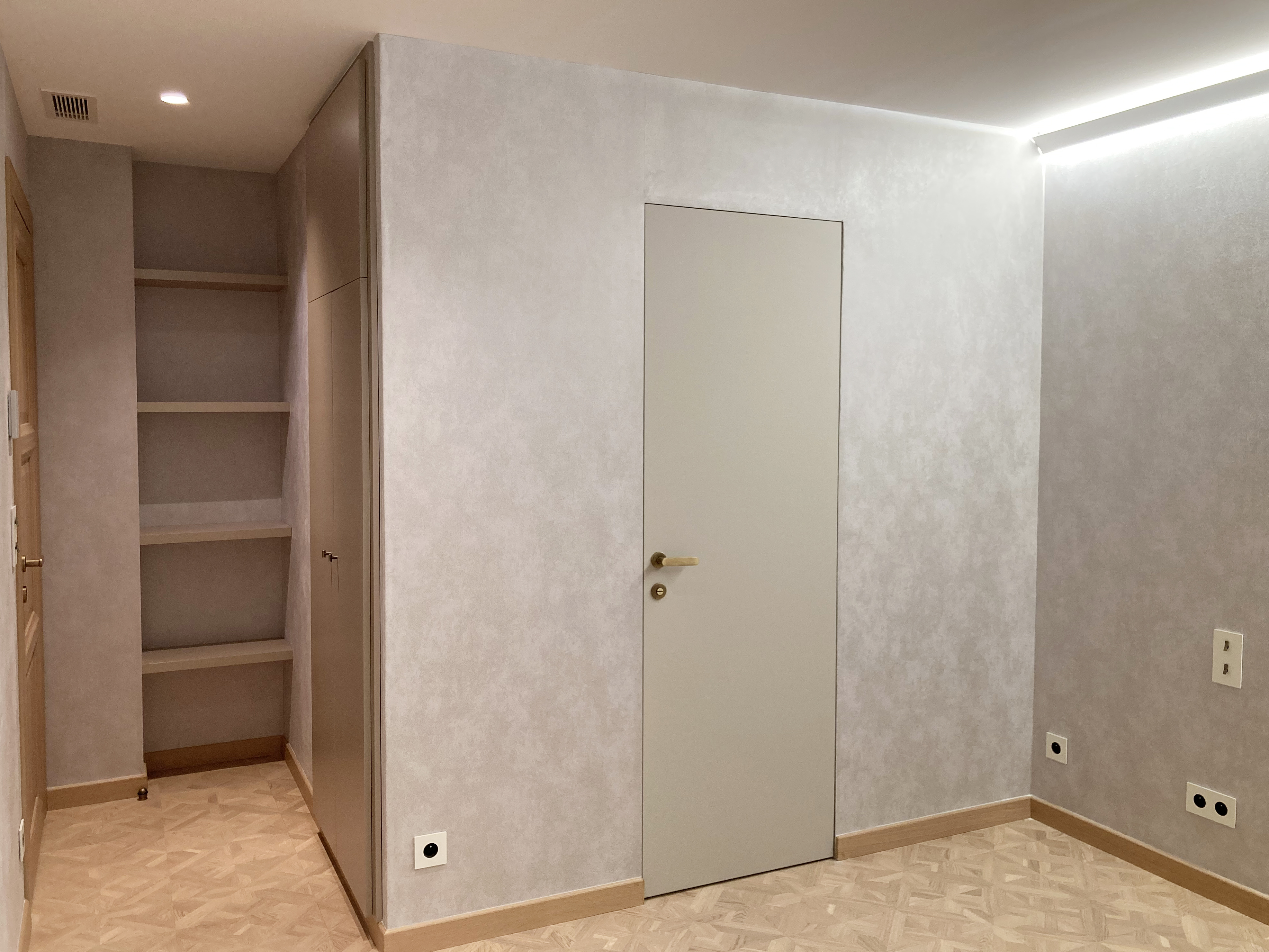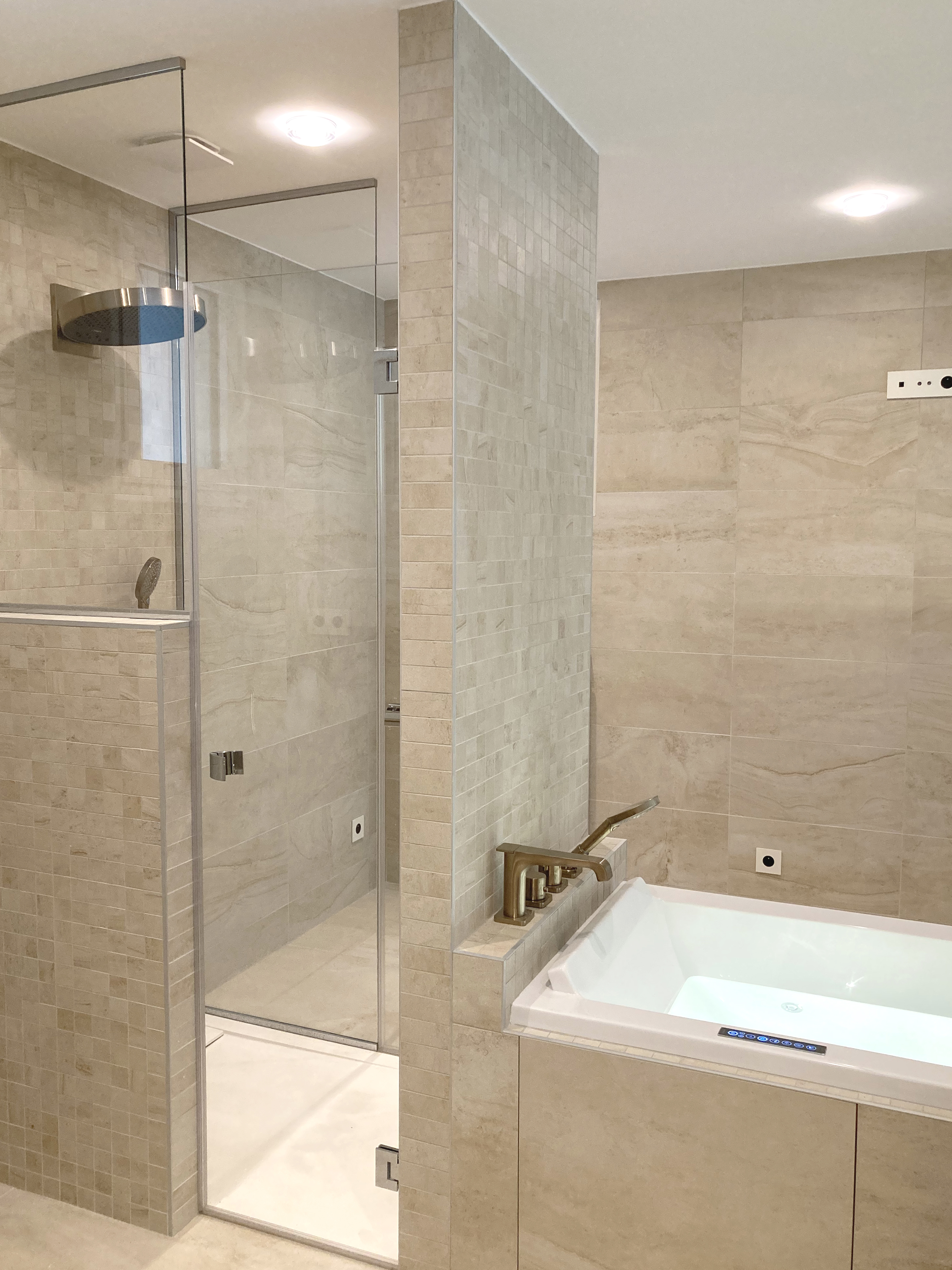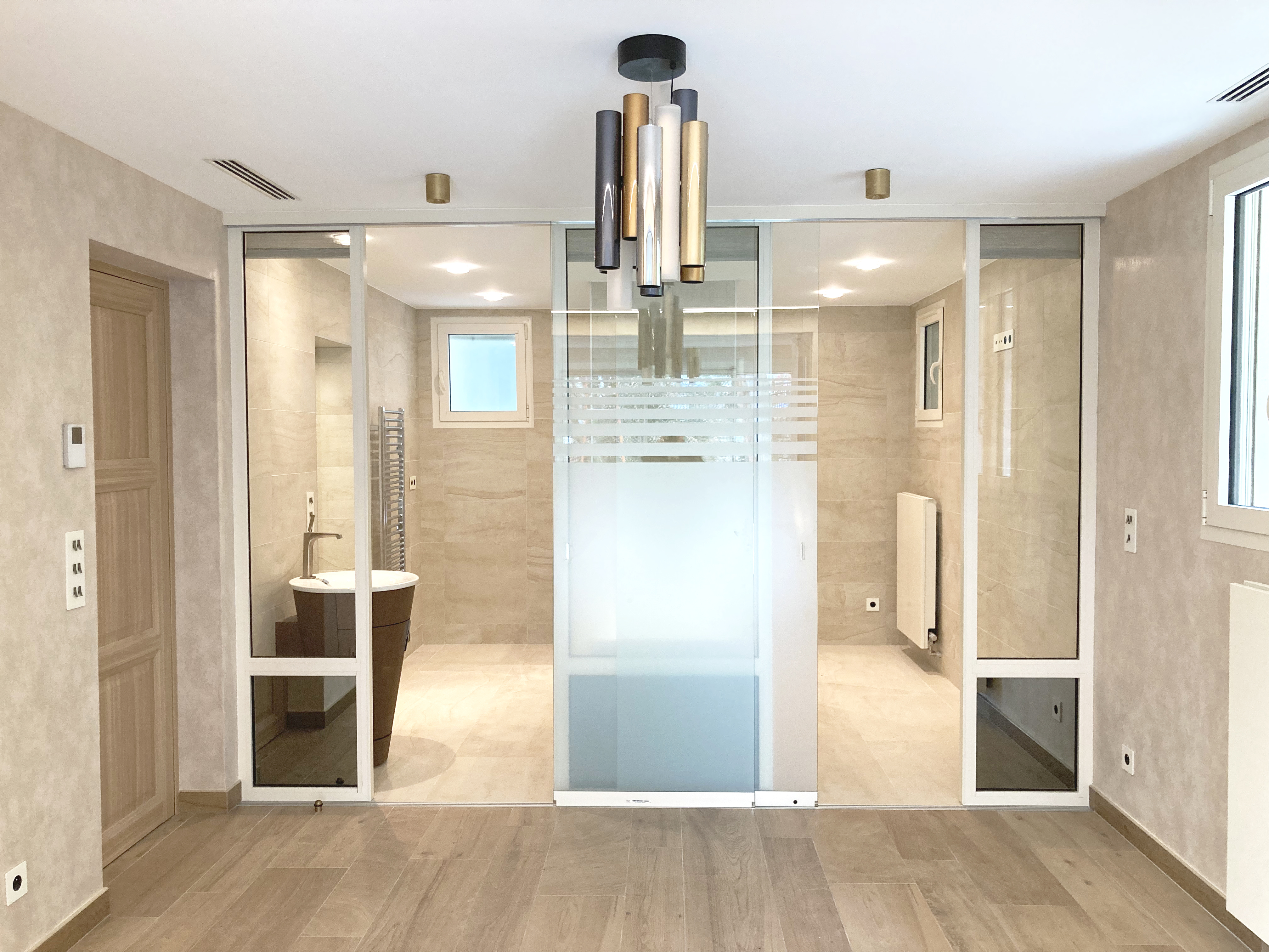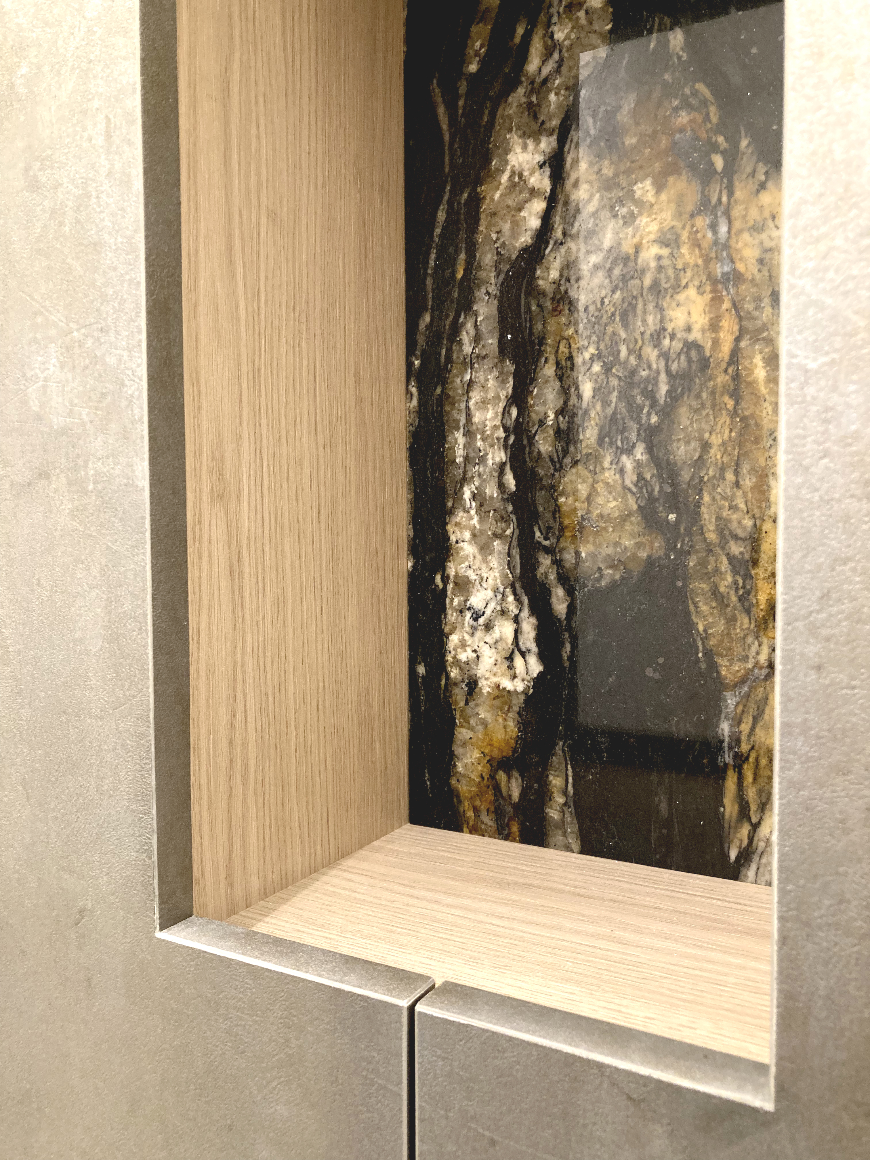 Nos choix de matériaux ont été guidés par une recherche d’authenticité et de qualité. La pierre naturelle, travaillée avec le savoir-faire exceptionnel du procédé lamellé roches® de la marbrerie Maison Derudet est omniprésente dans ce projet. Les plans vasques sur mesure et l’arche en pierre ajoutent des touches uniques et raffinées à l’ensemble. Cette réalisation illustre notre approche : sublimer les espaces tout en mettant en valeur des matériaux nobles et le travail d’artisans passionnés.