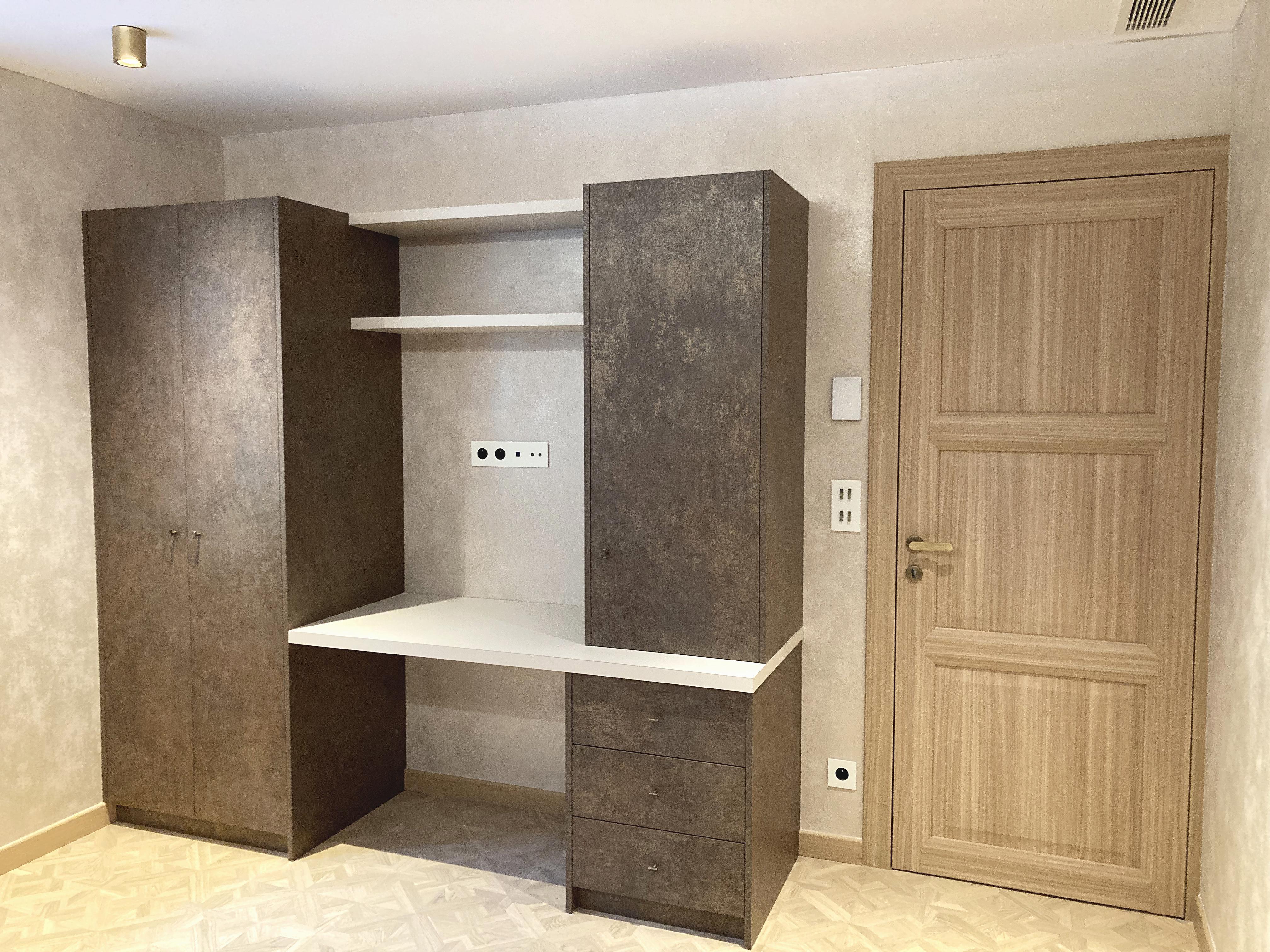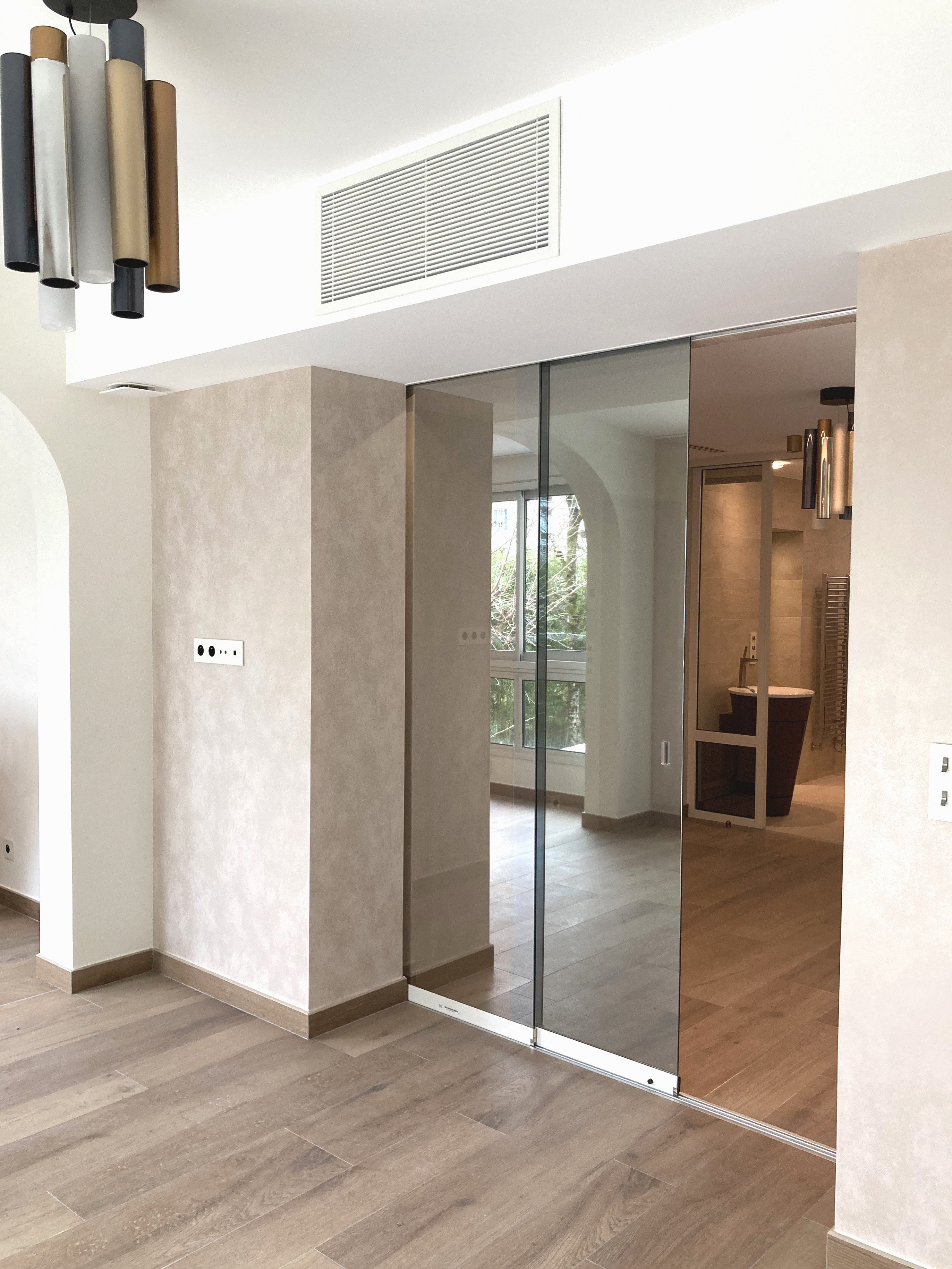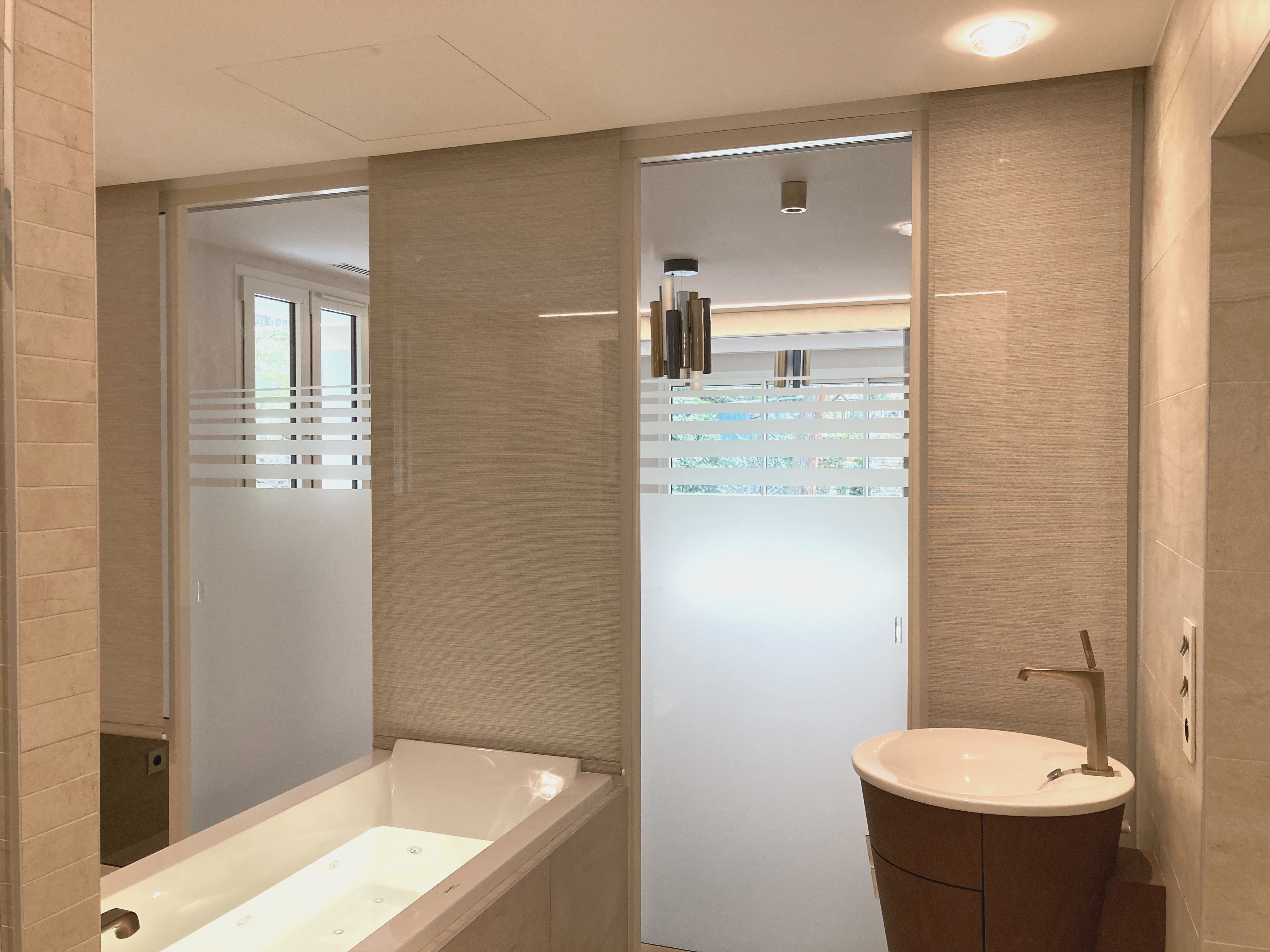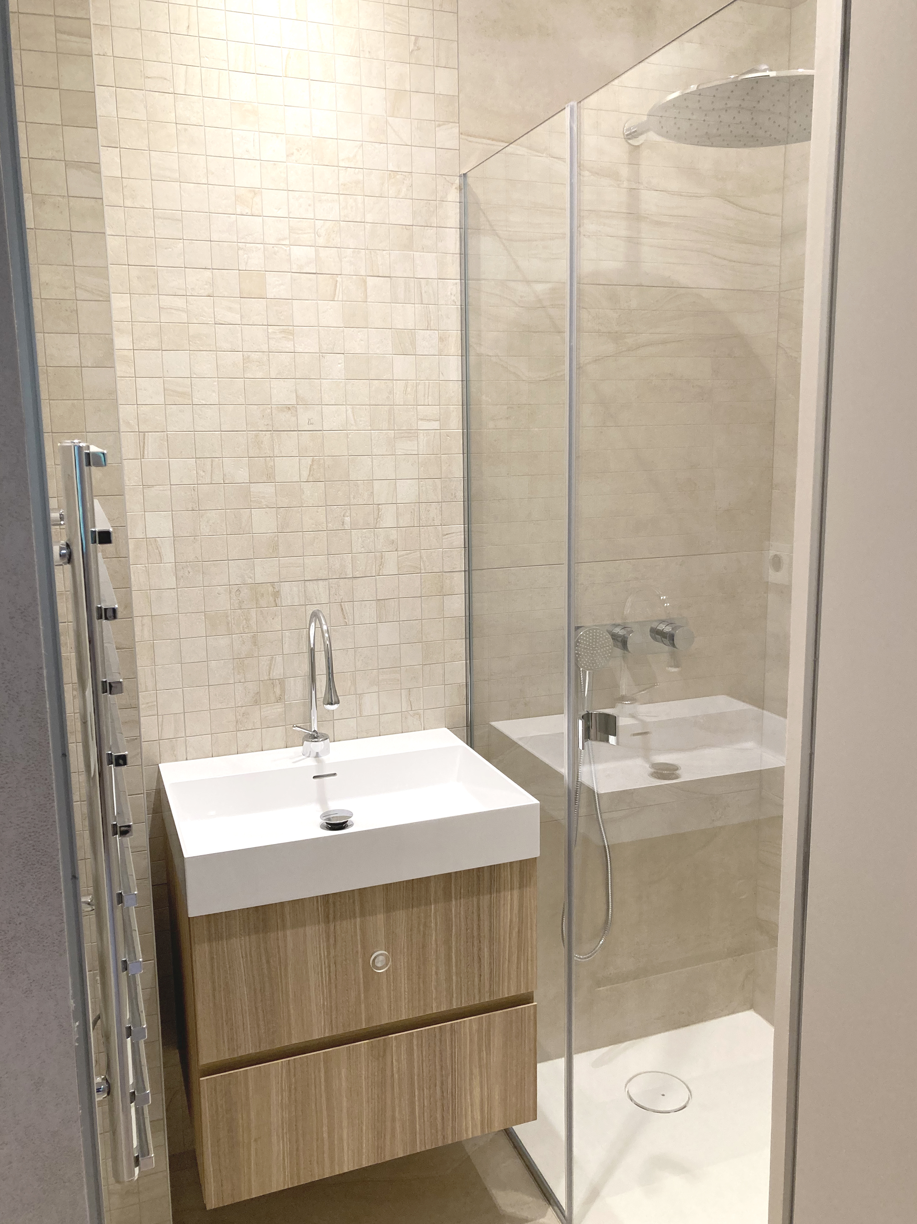 Nos choix de matériaux ont été guidés par une recherche d’authenticité et de qualité. La pierre naturelle, travaillée avec le savoir-faire exceptionnel du procédé lamellé roches® de la marbrerie Maison Derudet est omniprésente dans ce projet. Les plans vasques sur mesure et l’arche en pierre ajoutent des touches uniques et raffinées à l’ensemble. Cette réalisation illustre notre approche : sublimer les espaces tout en mettant en valeur des matériaux nobles et le travail d’artisans passionnés.