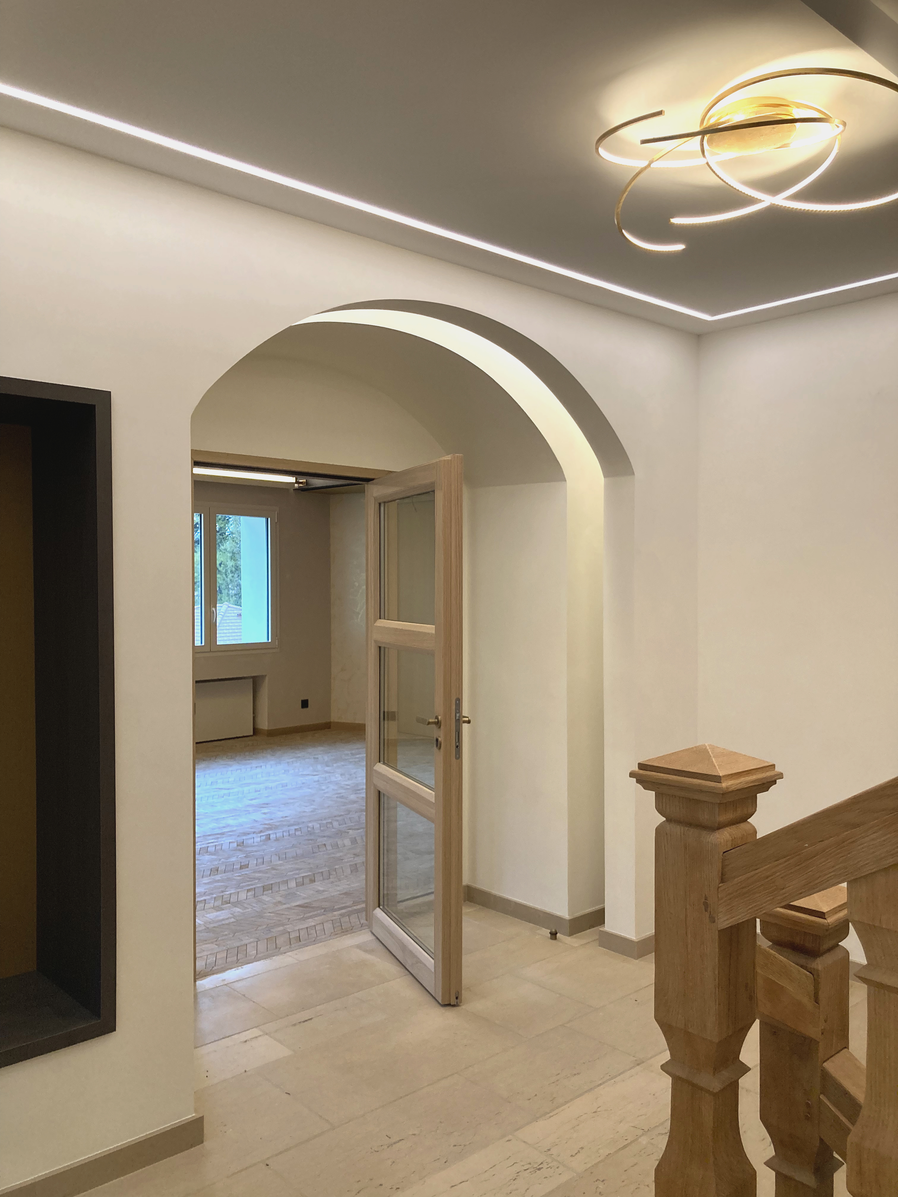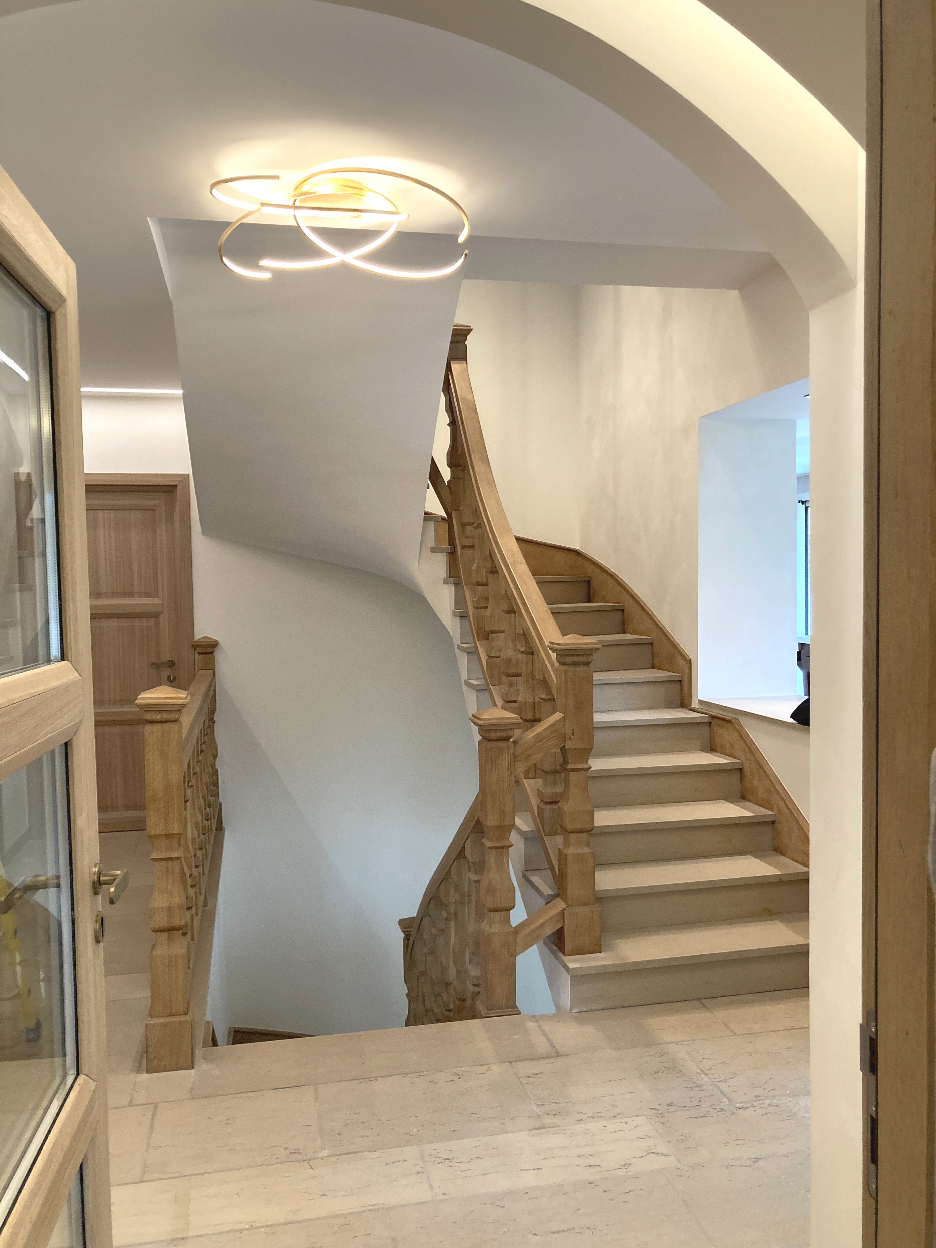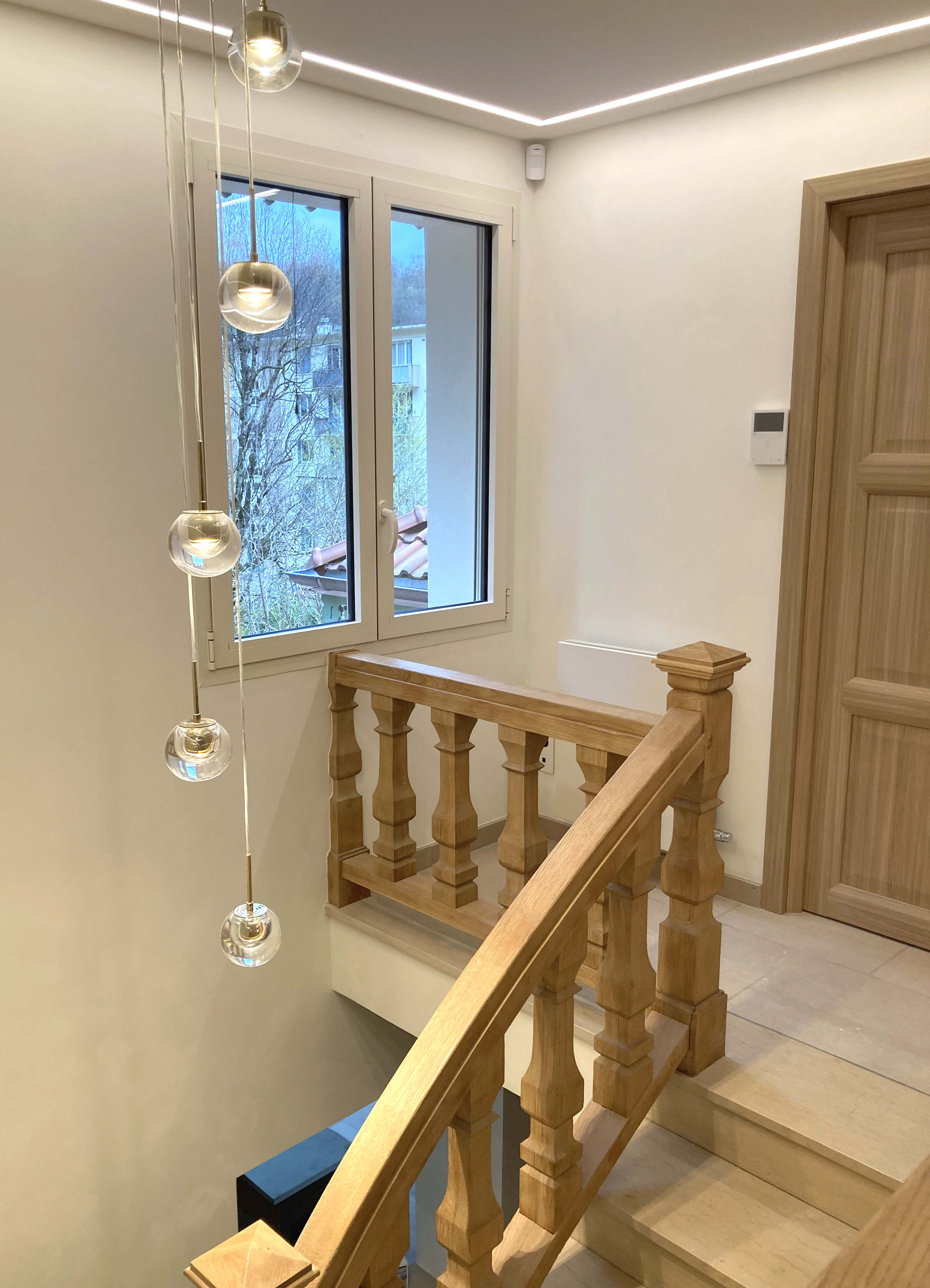 Pour ce projet de rénovation complète d’une maison sur trois niveaux, nous avons insufflé une nouvelle vie à celle-ci en associant harmonie et authenticité. Nous avons ajouté de la surface habitable en créant une véranda baignant dans la lumière naturelle donnant sur un parc arboré, offrant un lien entre intérieur et extérieur. La modification des circulations intérieures de la maison existante et la transformation de l’escalier apportent une meilleure fluidité, de la modernité et de l’élégance.