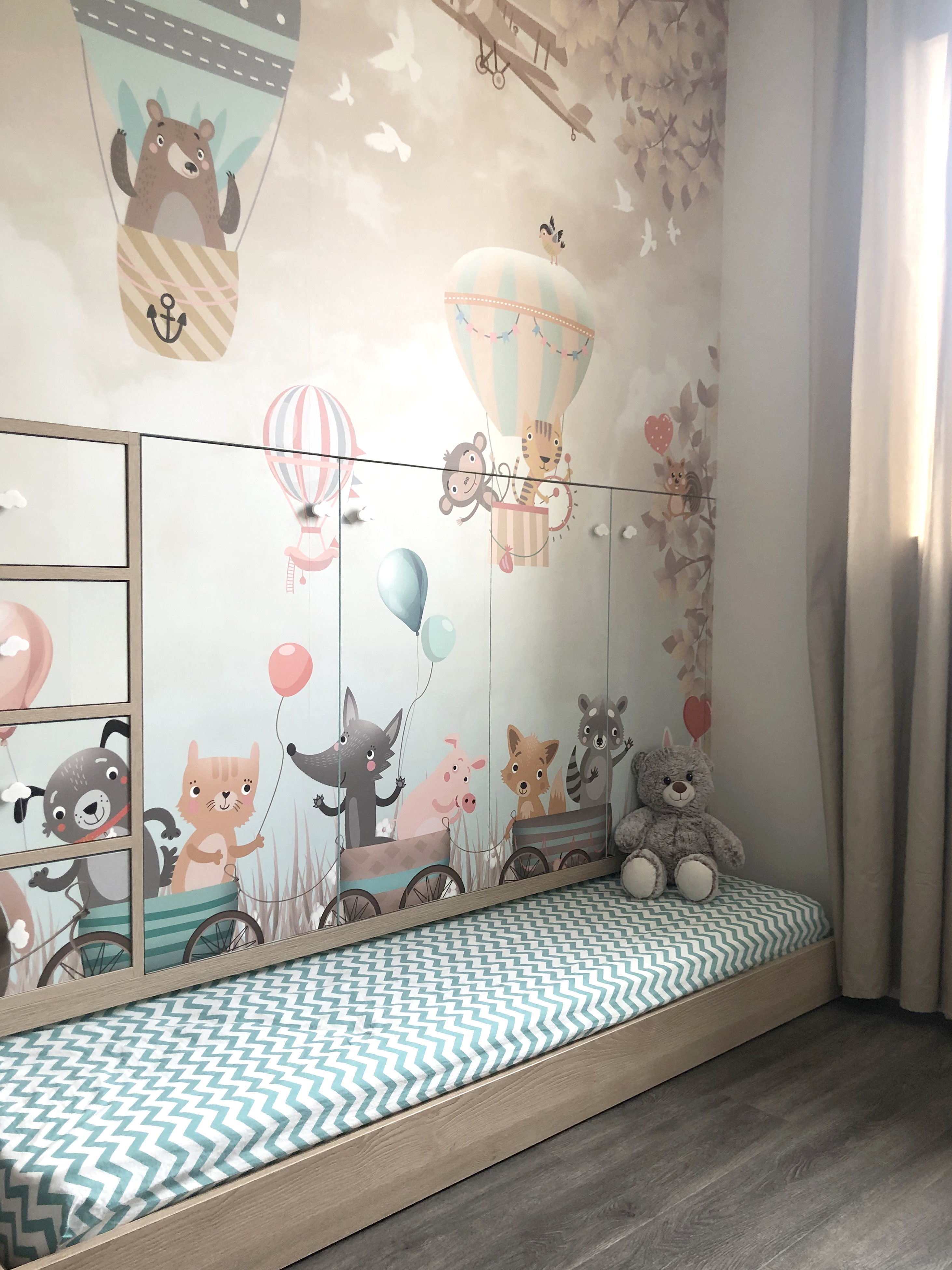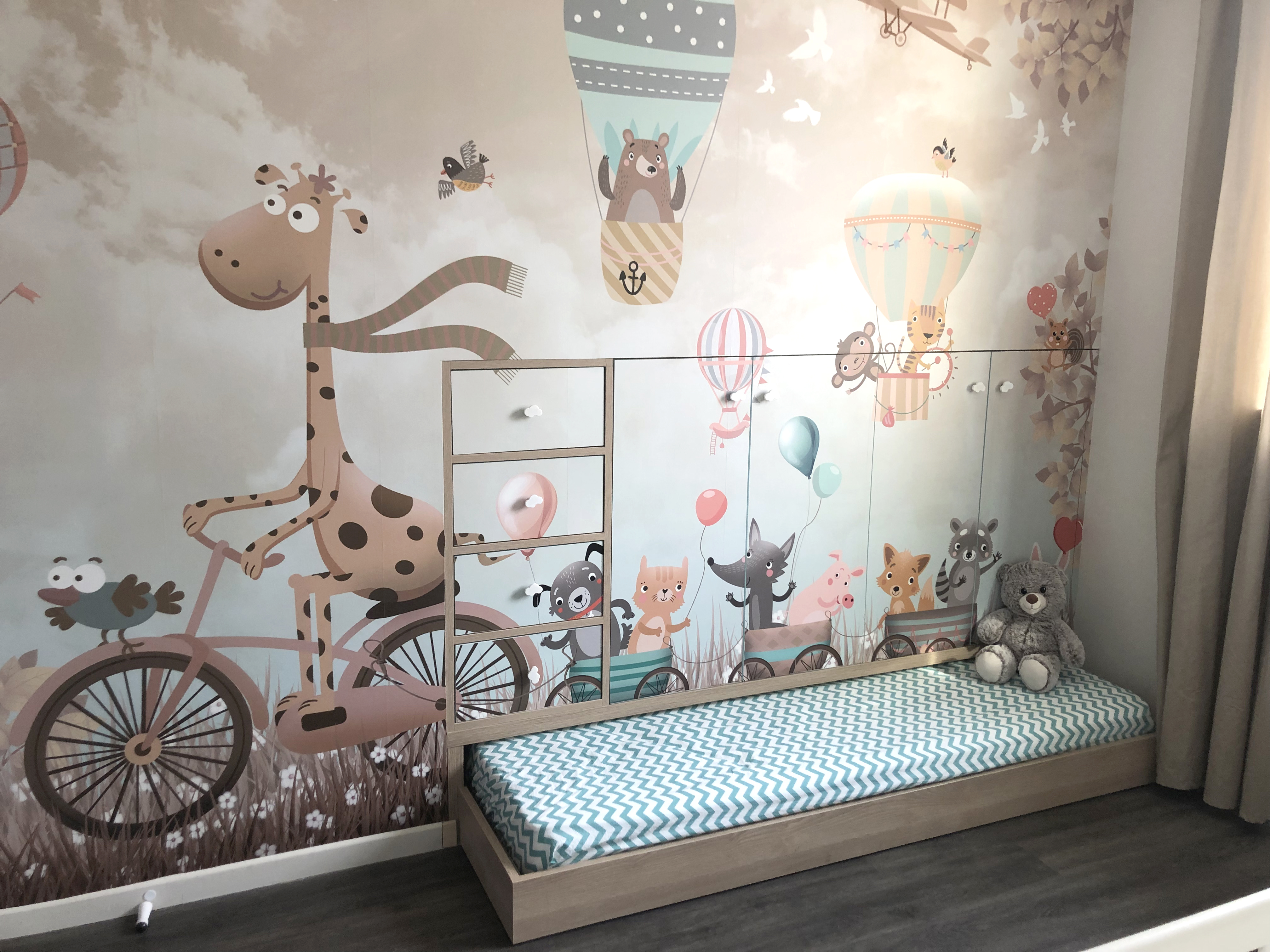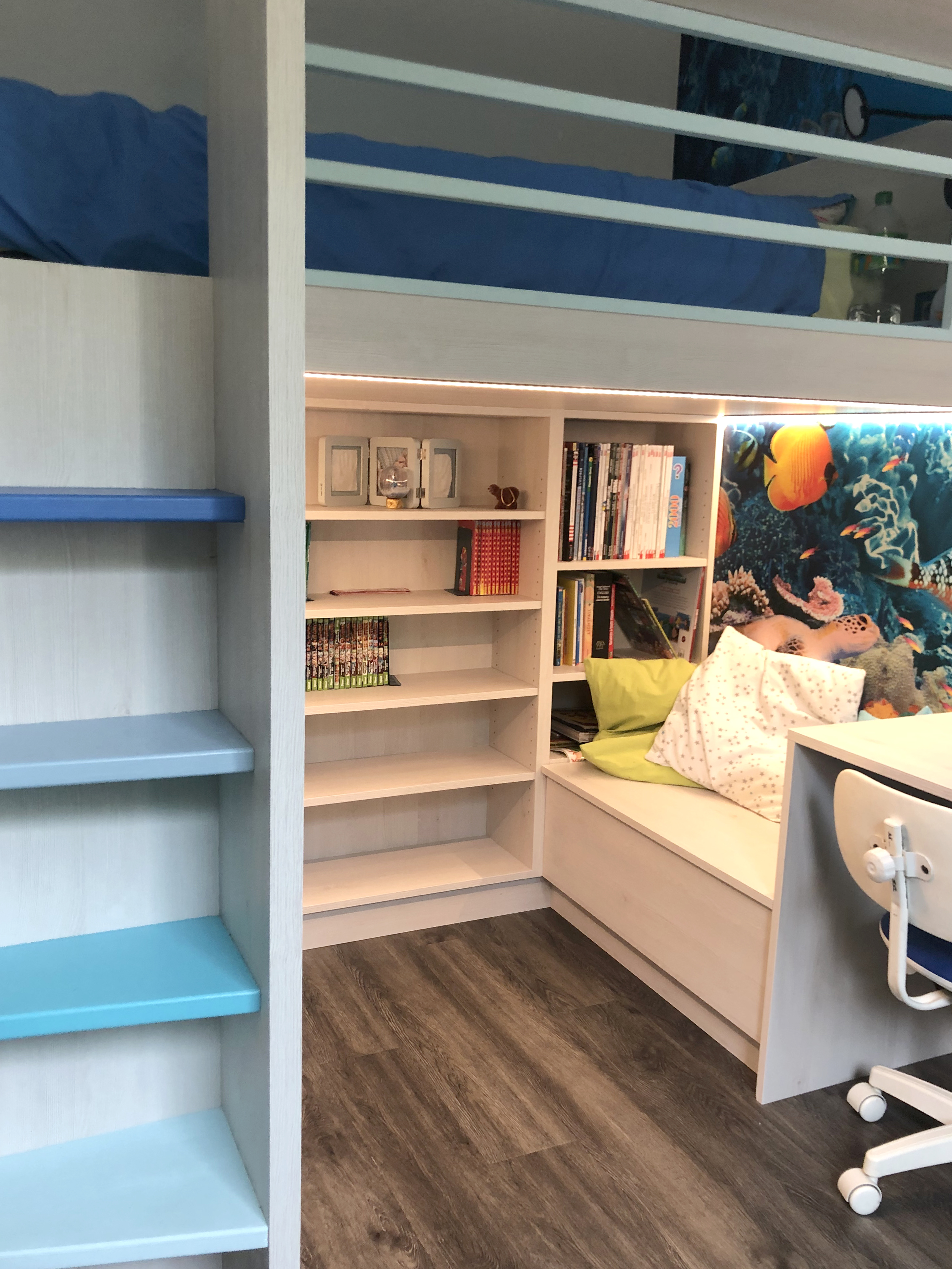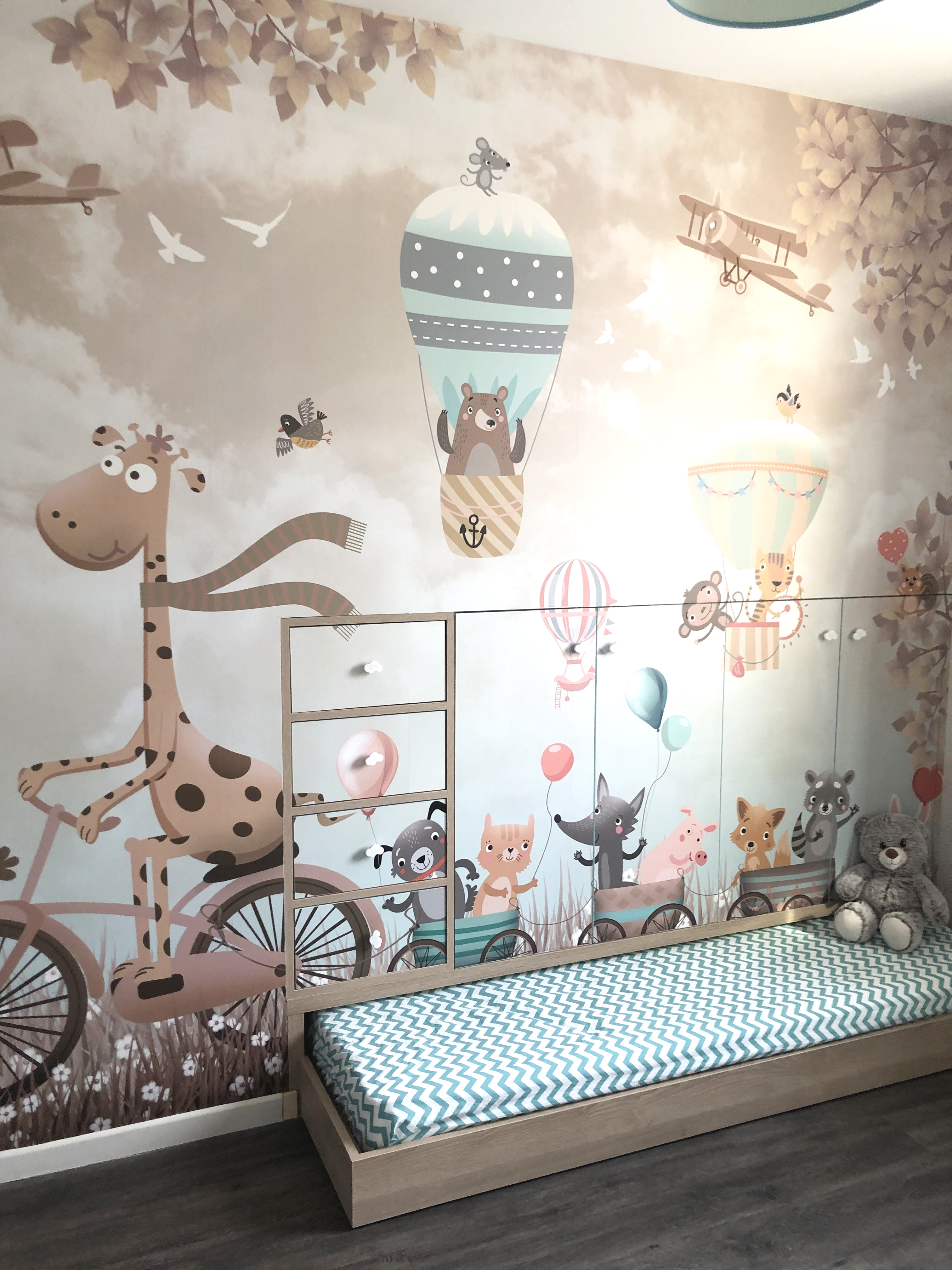 Les chambres ont été décorées avec soin pour offrir un cadre à la fois ludique et fonctionnel : des fonds marins animés dans l’une, une carte du monde colorée dans l’autre et un décor aérien avec des montgolfières pour le plus petit. Nous avons créés et réalisés sur mesure des lits surélevés avec rangements intégrés et bureau fonctionnels permettent à chacun de s’épanouir dans un cadre ludique et harmonieux. Ce projet illustre notre capacité à transformer les espaces selon les besoins évolutifs de la famille.
