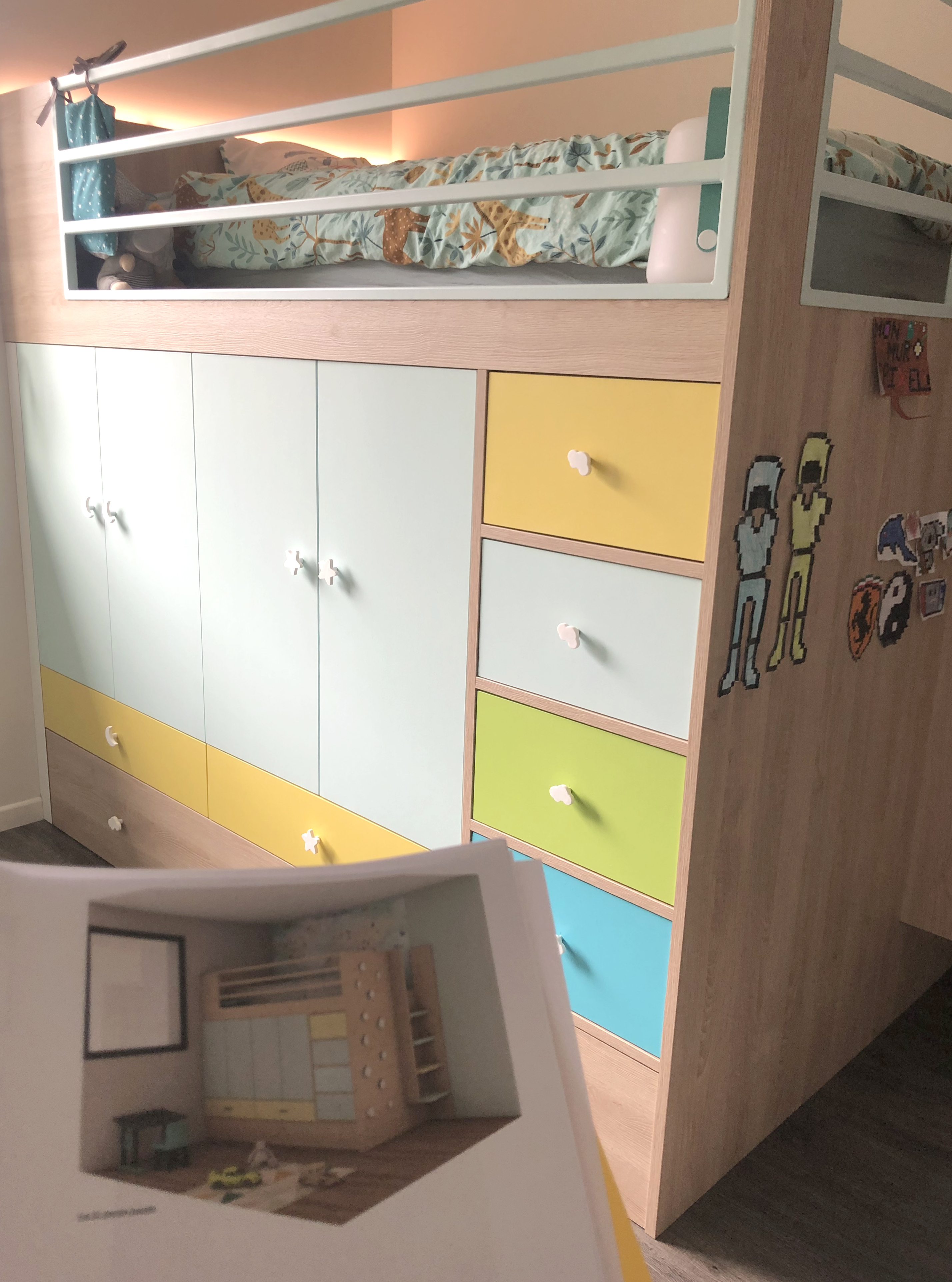 Pour ce projet, nous avons repensé l’espace nuit de la maison de nos clients afin de créer une chambre supplémentaire pour répondre à l’arrivée imminente d’un nouveau membre dans cette famille. À l’issue de cette rénovation, chaque enfant bénéficie désormais de son propre univers, aménagé en fonction de son âge, de ses besoins et de ses passions.