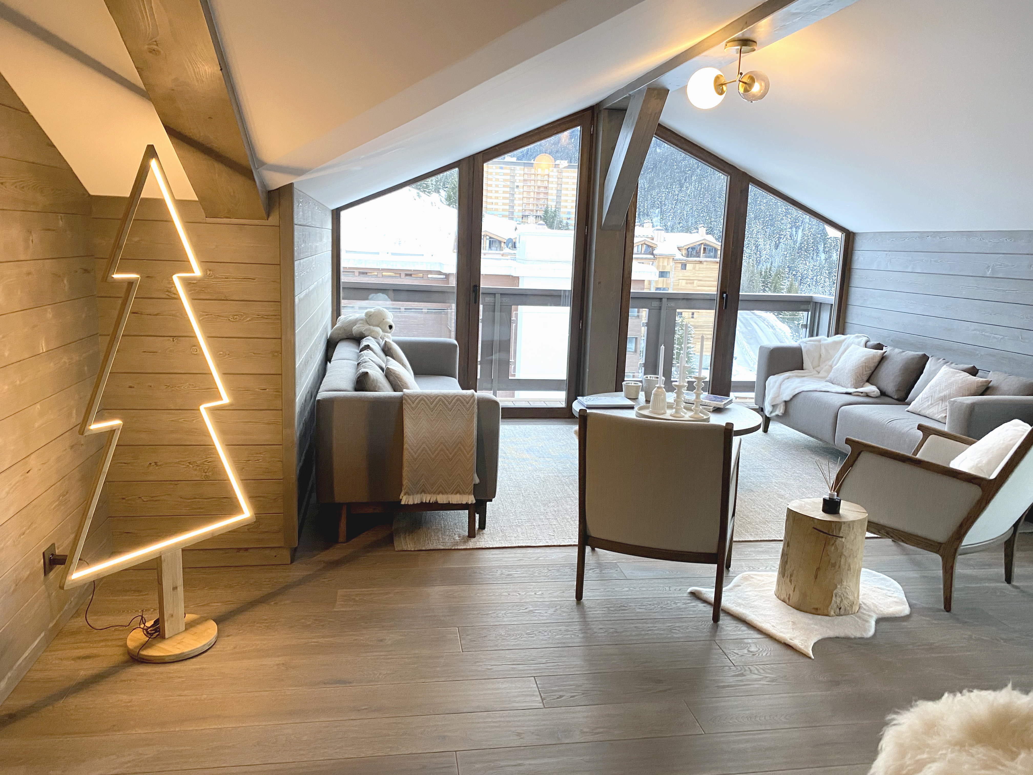 Pour ce projet d’exception à Courchevel, nous avons mis tout notre savoir-faire en architecture intérieure au service de la création d’espaces uniques et raffinés. Chaque appartement a été conçu avec une attention particulière portée aux détails : optimisation des volumes, choix harmonieux des matériaux et création d’ambiances sur mesure. Nous avons imaginé des intérieurs où modernité et esprit montagnard s’entrelacent, mêlant bois chaleureux, lignes épurées et finitions haut de gamme.
