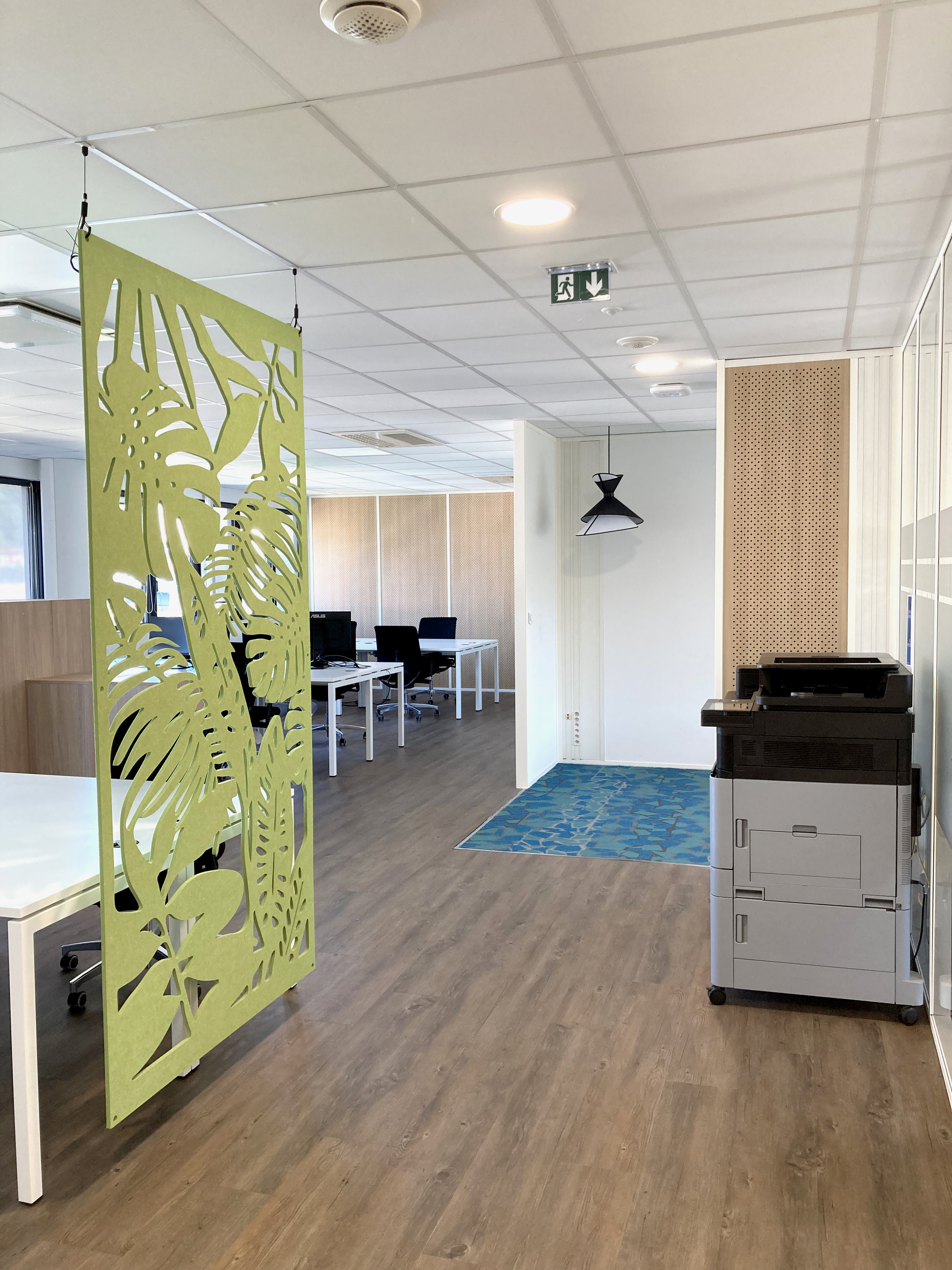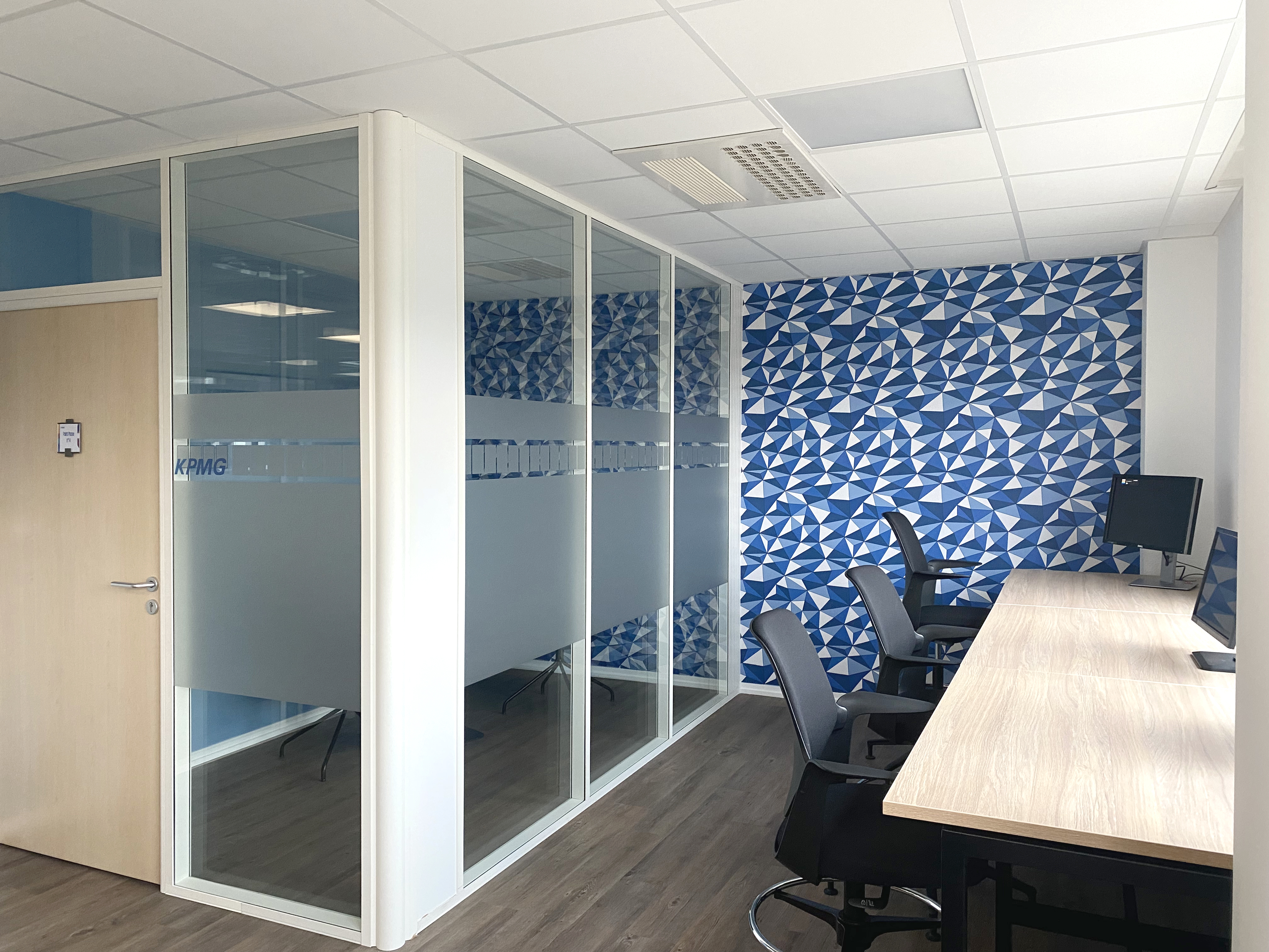 Ce projet d’aménagement intérieur des 3ème et 4ème étages de leur siège social Lyonnais reflète une vision contemporaine et fonctionnelle des espaces de travail. Pensés pour favoriser la collaboration et le bien-être des équipes, ces bureaux se distinguent par leur design soigné. Les cloisons vitrées offrent une luminosité optimale, tandis que les motifs muraux audacieux et les séparateurs végétaux acoustiques ajoutent une touche d’élégance et de dynamisme. Les espaces de réunion accueillants et les zones de travail ergonomiques créent un environnement propice à la productivité, en harmonie avec les valeurs modernes et professionnelles de KPMG.